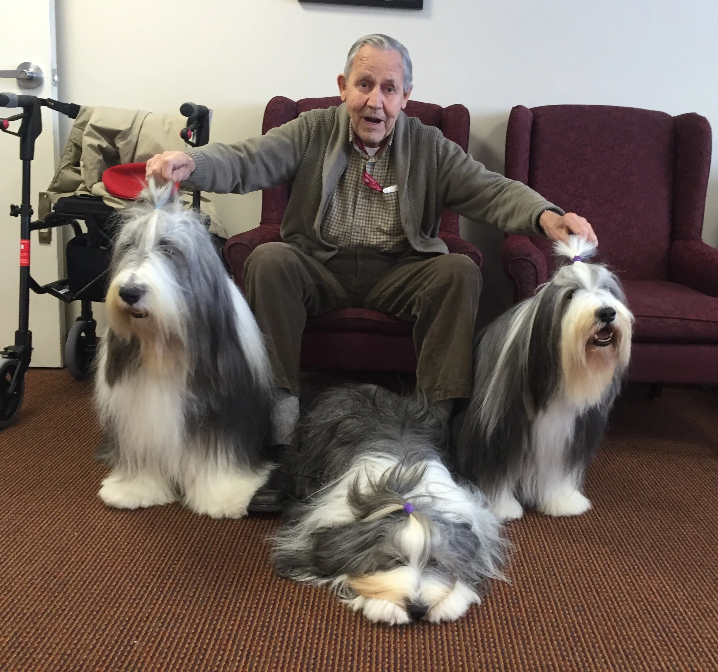 Frank has been an incredible ambassador for the breed. He’s never met a person or child he didn’t like. In his spare time he visited retirement homes, gracing the residents with his happy personality and kisses. He was also the mascot for the Alzheimer Society’s local Walk For Memories.